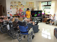 レクリエーションは、手足を使った体操から、グループで楽しめるゲームまで豊富な内容をとりそろえています。定番は元気な声で歌いながら体を動かすリハビリ体操!