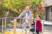 機械を使った運動のみならず、毎日必ず行う中庭歩行訓練は、利用者様にも大好評。