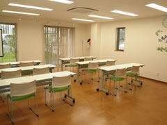 床はコルク調で、やわらかな日差しの降り注ぐ空間です。